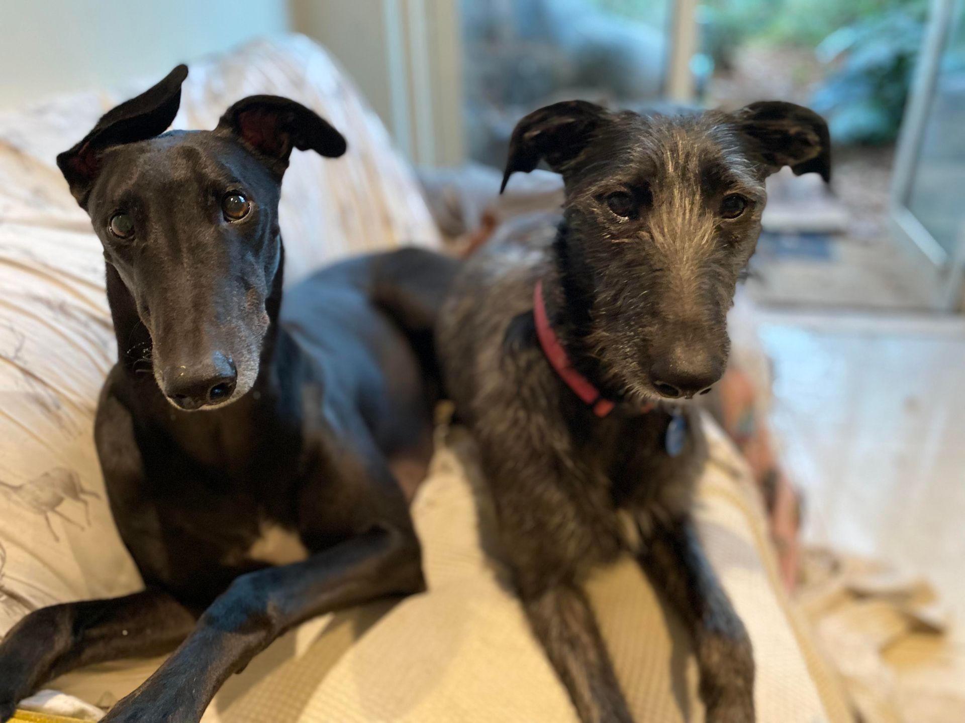 At home, I share life with Timmy, a rescued racing greyhound, and Freya, a staghound cross adopted from the local pound. They’re both dogs with big feelings, a little quirky, beautifully sensitive, and endlessly loved.